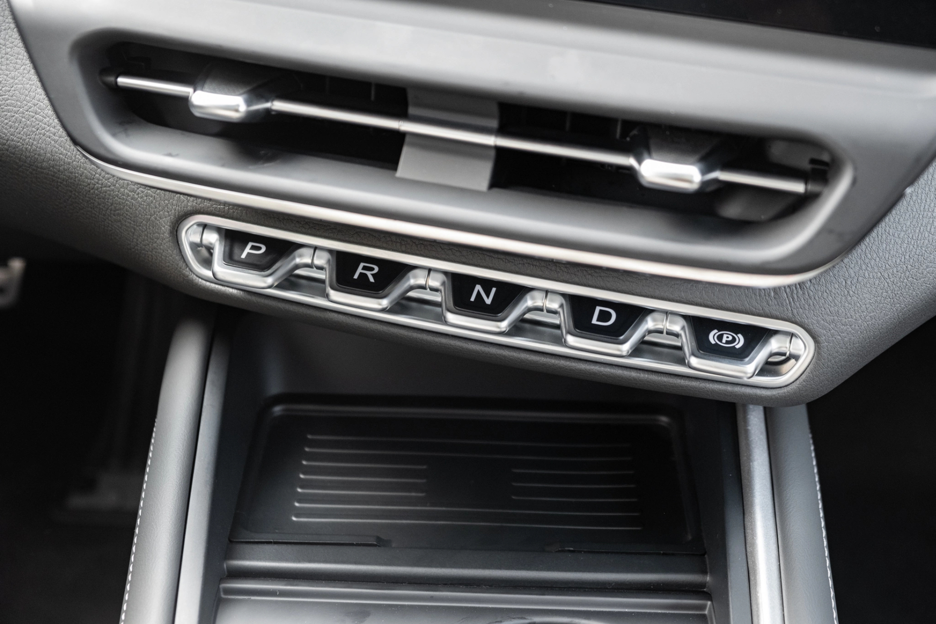Phần đầu xe nổi bật với dải đèn LED hình cánh chim đặc trưng, kết hợp cùng cụm đèn pha LED đặt thấp dưới nắp capo, tăng hiệu quả chiếu sáng và thẩm mỹ. Lưới tản nhiệt được loại bỏ, mang lại vẻ tối giản và thanh lịch. Mui xe vuốt thấp về phía sau, tạo dáng coupe thể thao, đồng thời tăng tính khí động học. Tay nắm cửa dạng ẩn cùng cổng sạc đặt dưới cột A góp phần hoàn thiện thiết kế hiện đại và tiện dụng.